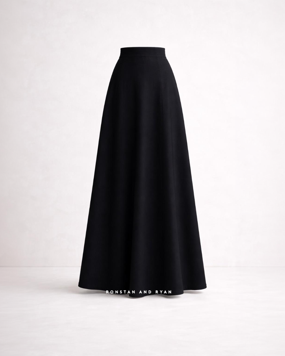 Designer Description: The Isolde Skirt moves with quiet elegance, designed to create a long, uninterrupted silhouette that elongates the frame. It was intentionally crafted without pockets to preserve its smooth drape and refined line, allowing the fabric to fall flawlessly without added bulk.