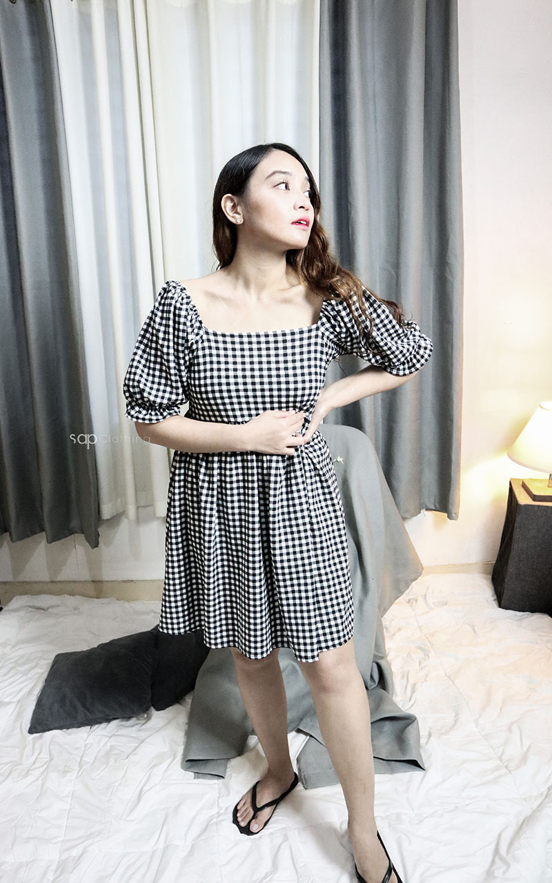 This iconic Gungham pattern is too cute for this babydoll puff sleeves dress. Wear it anytime anywhere. And ohh, it comes with matching shorts with deep side pockets. ?